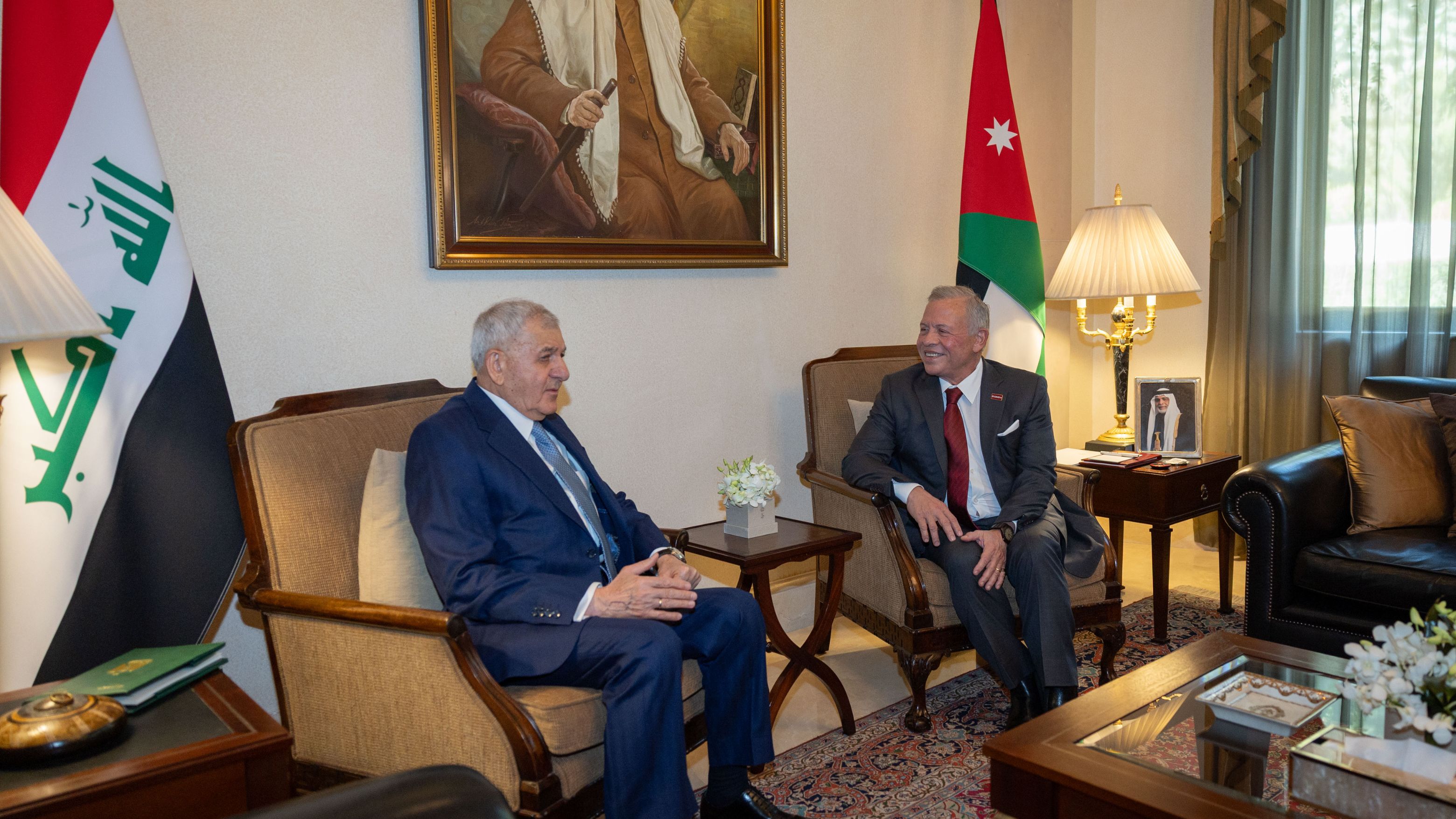 وكان في الاستقبال بمطار ماركا، نائب رئيس الوزراء ووزير الخارجية وشؤون المغتربين أيمن الصفدي، ومدير مكتب جلالة الملك، المهندس علاء البطاينة، ووزير الصناعة والتجارة والتموين يعرب القضاة، رئيس بعثة الشرف المرافقة للضيف، ورئيس لجنة أمانة عمان الكبرى الدكتور يوسف الشواربة، ومحافظ العاصمة ياسر العدوان، وسفير العراق لدى الأردن عمر البرزنجي.